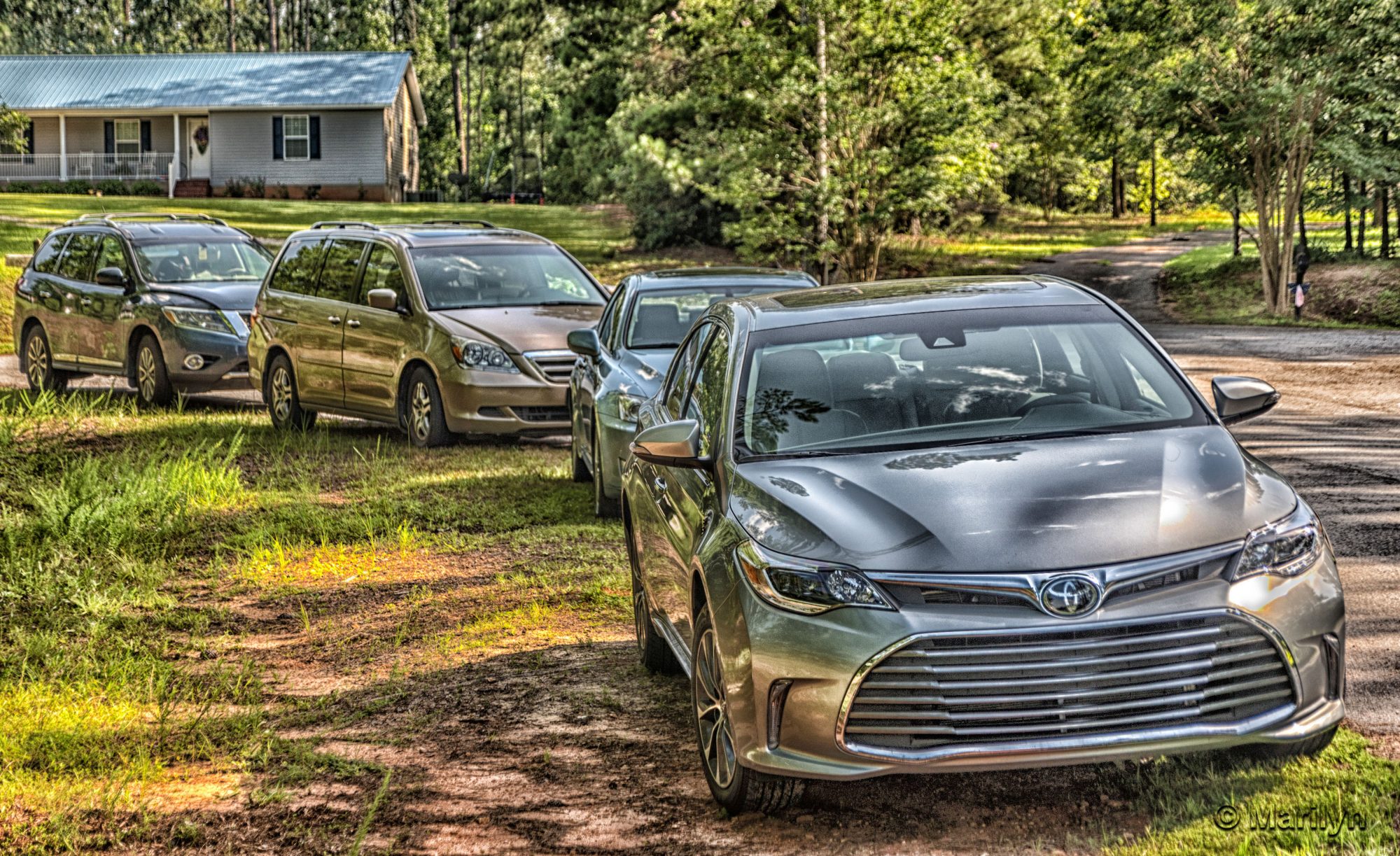 I went to a friend’s house for the 4th of July celebration. While everyone was inside, I walked outside and took some ordinary pictures of the porch, house, and surrounding parked cars. I edited these with Lightroom, Photoshop, and Nik software to achieve some unusual results of everyday, ordinary object.