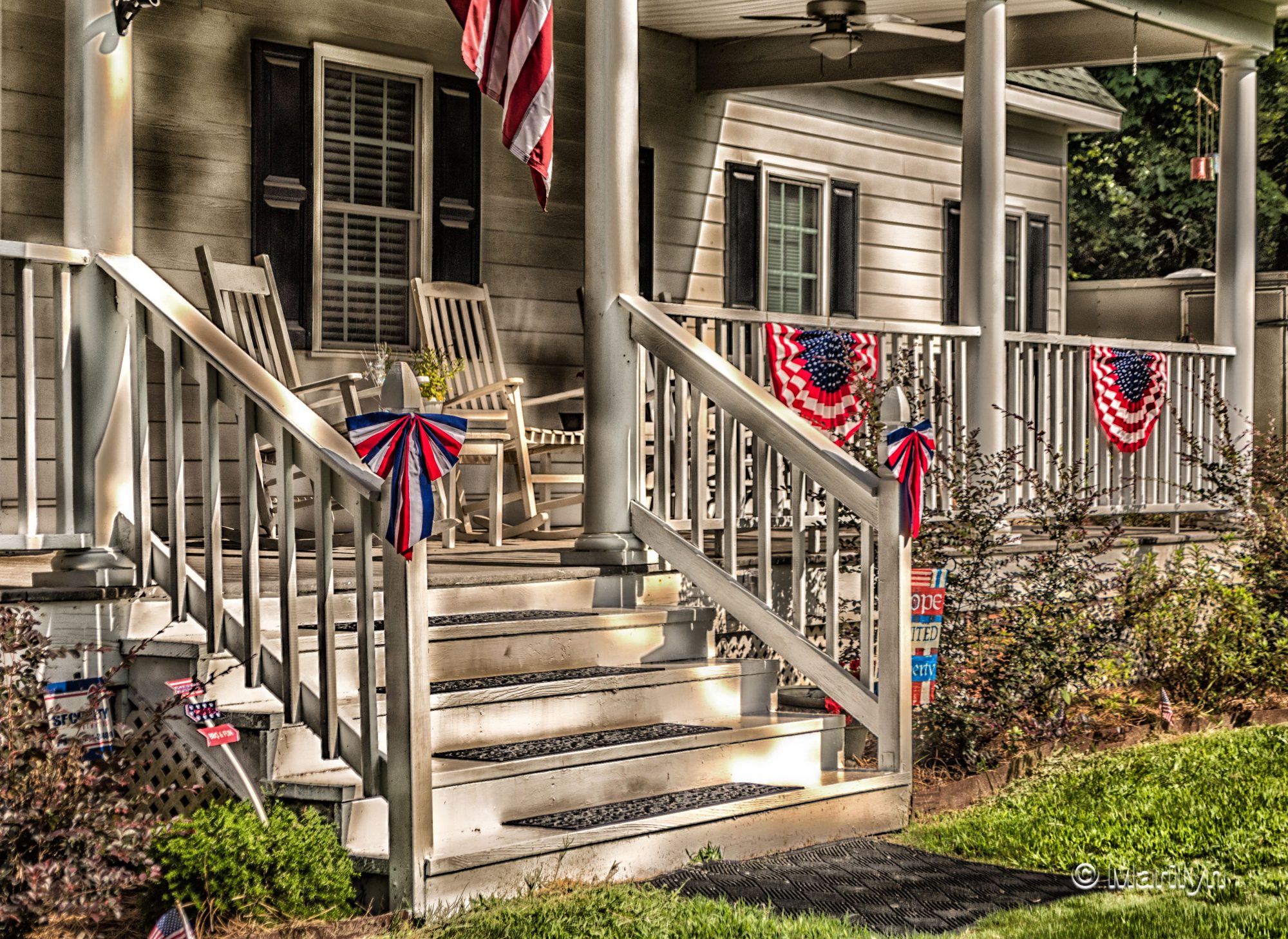 I went to a friend’s house for the 4th of July celebration. While everyone was inside, I walked outside and took some ordinary pictures of the porch, house, and surrounding parked cars. I edited these with Lightroom, Photoshop, and Nik software to achieve some unusual results of everyday, ordinary object.