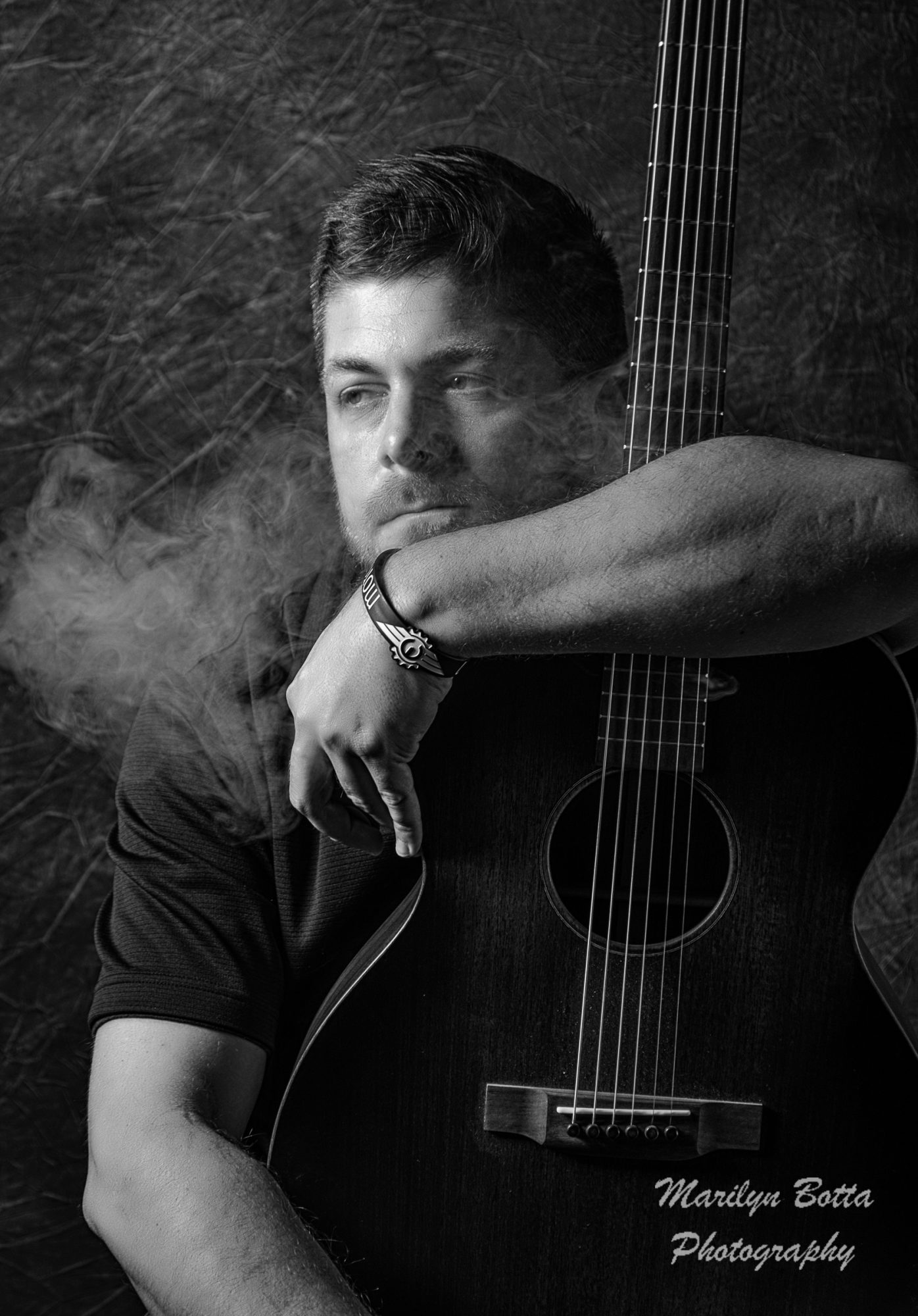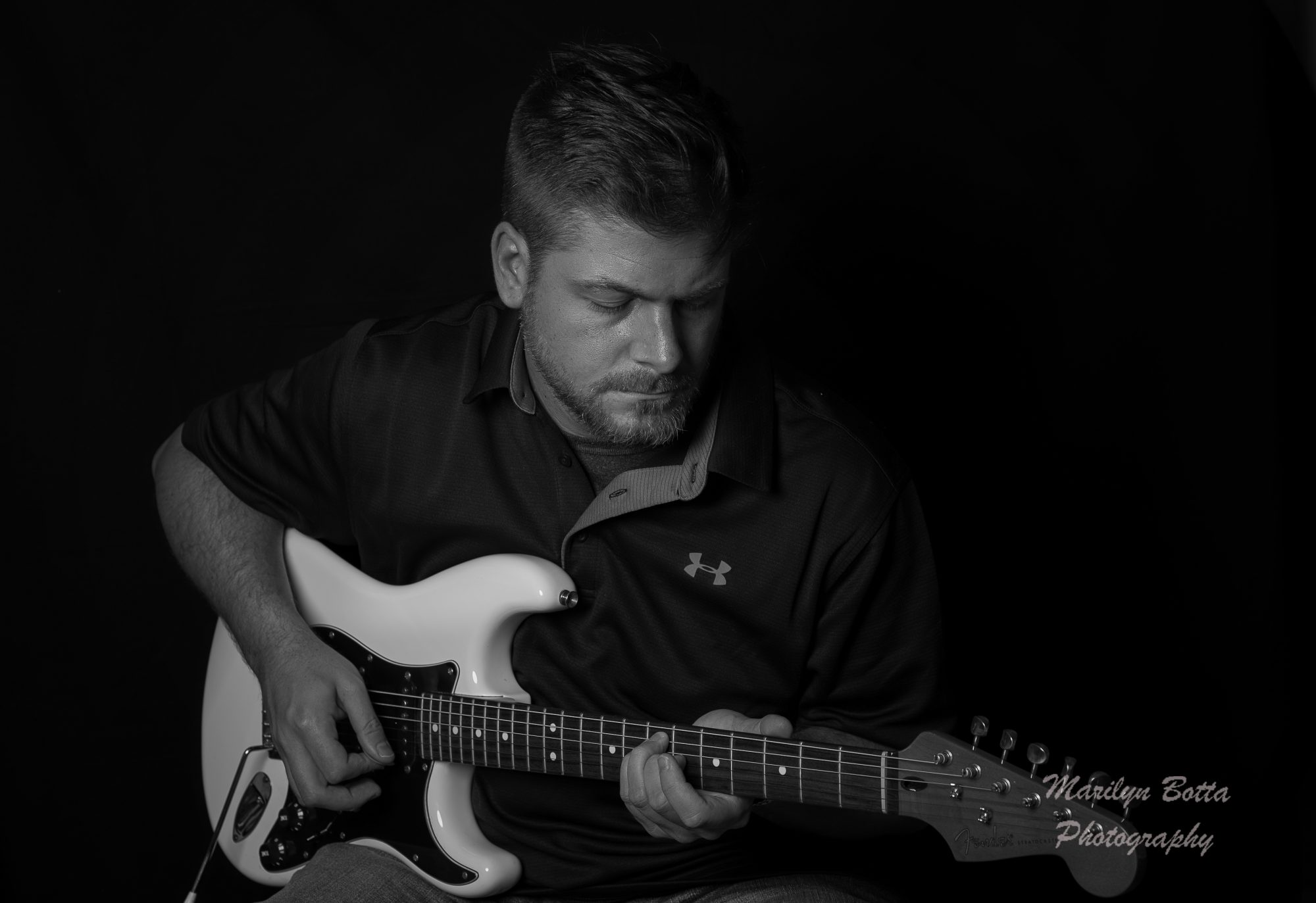 I did a photo shoot of a musician friend of mine, Curt. I love doing low-key photography of musicians. I went to his house and positioned my lighting so he would come out mysterious and dark. I love the guitar and took many images of him playing.