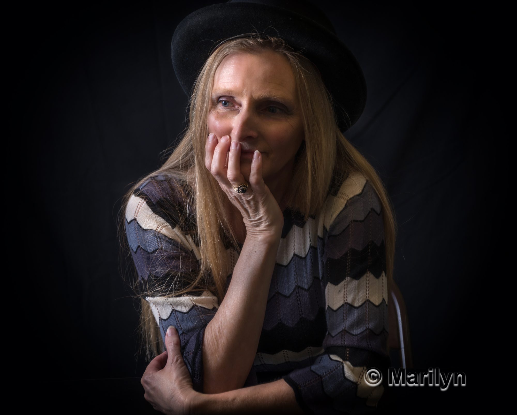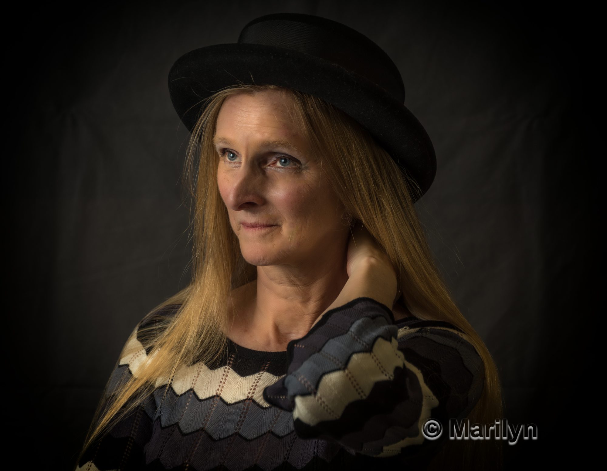 I like the effect–it looks like an identity crisis to me. Then Joyce wanted some portraits too. She is a great model and doesn’t require too much instruction on posing.