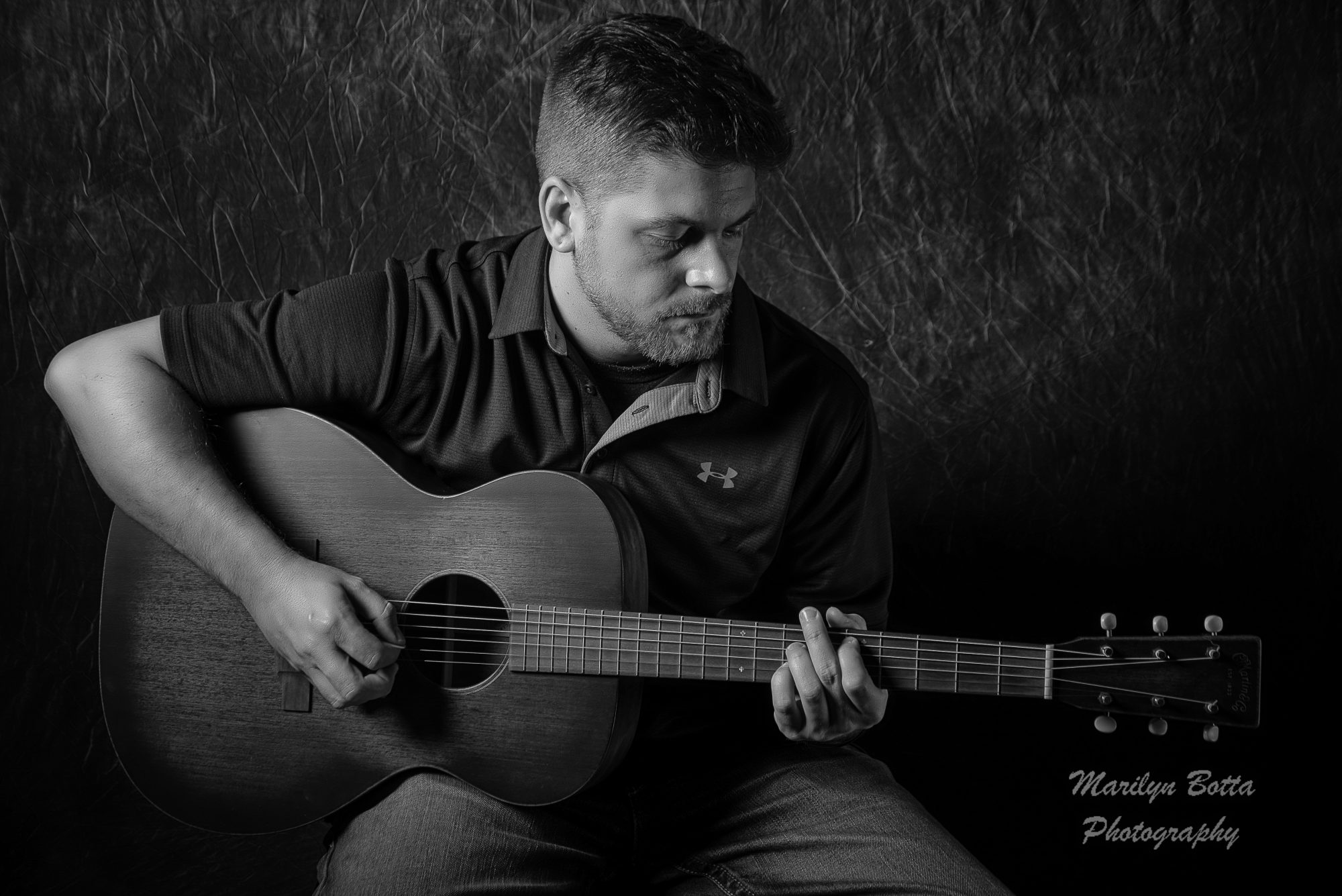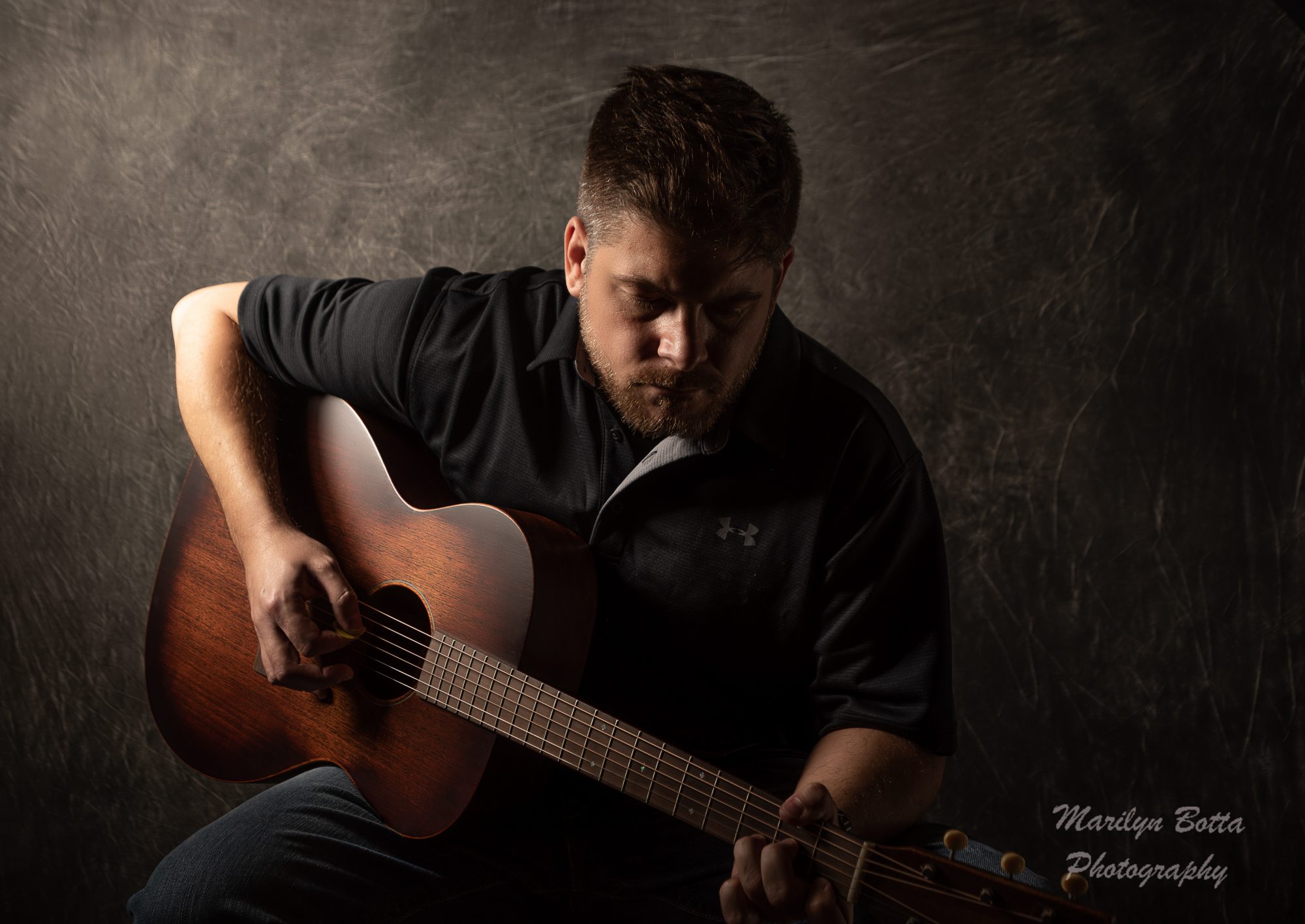 I did a photo shoot of a musician friend of mine, Curt. I love doing low-key photography of musicians. I went to his house and positioned my lighting so he would come out mysterious and dark. I love the guitar and took many images of him playing.