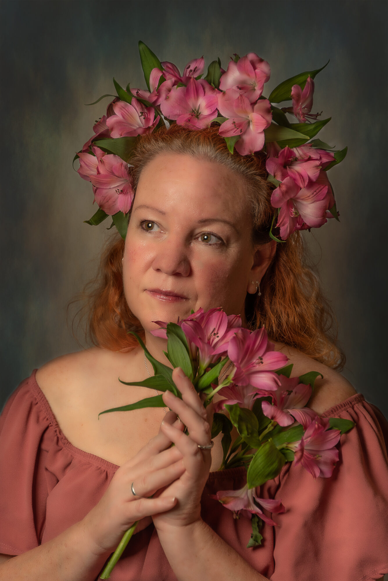 On a Sunday in February I had a photo shoot with Beth. I purchased two very pretty dresses for her to wear for the portraits and the fit was perfect. I think the dresses offset her red hair. Here are four of the best ones. Two are the same image but both are edited differently.