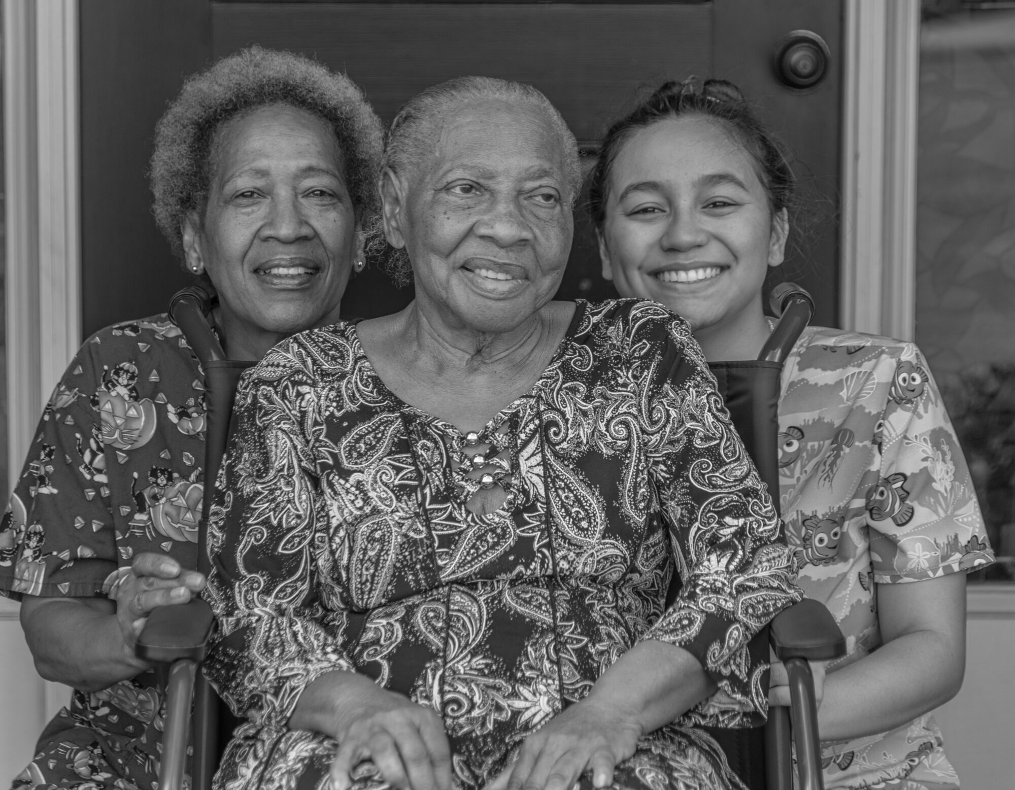I was asked to do some hospice photos of a lovely lady in her home. She had just turned 90 recently and it was indeed hard to believe because she had such beautiful skin, no wrinkles, or other signs of aging one would see at 90. Her niece was her caregiver and had the same name. The day outside was absolutely perfect, warm and sunny. We started out in her bedroom where she was getting her hair fixed for the occasion. I then began to shoot and her smile was gorgeous. She also had two professional caregivers who were so gracious and allowed me to capture the genuine love they had for her. I did not use flash inside but used the natural light. I turned some into black and white as well. The whole time I was shooting, she was so cooperative and smiling. This was a lovely experience and I hope I brought some joy to the family and thank them for permitting me to do this photo shoot.