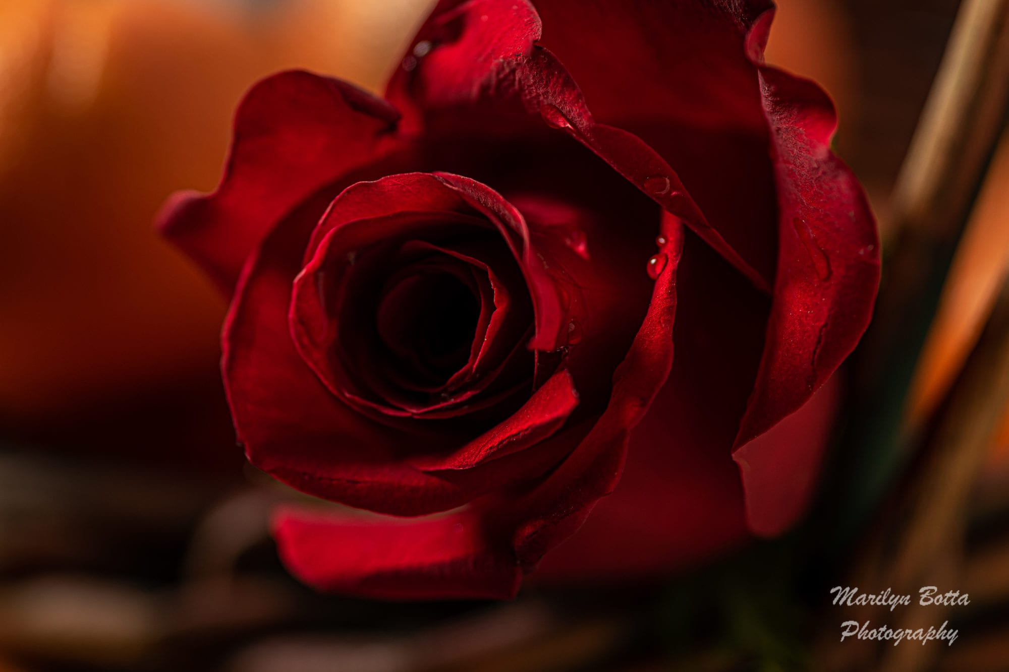 Roses come in many different colors, but to me, the red rose is the most beautiful. I love the way the delicate fragrant soft petals are enfolded so perfectly. I decided to use these beauties in a still life along with some pretty brown pears. I placed the roses into a green ceramic vase to offset the red in the roses. I placed a red lit candle on top of a wrought-iron holder and added a single red rose at the bottom. I arranged the pears at the foot of the vase. The entire composition was situated on a beige table cloth. I then selected purple and blue textures for the background to enhance the vivid colors of the elements of this creation.