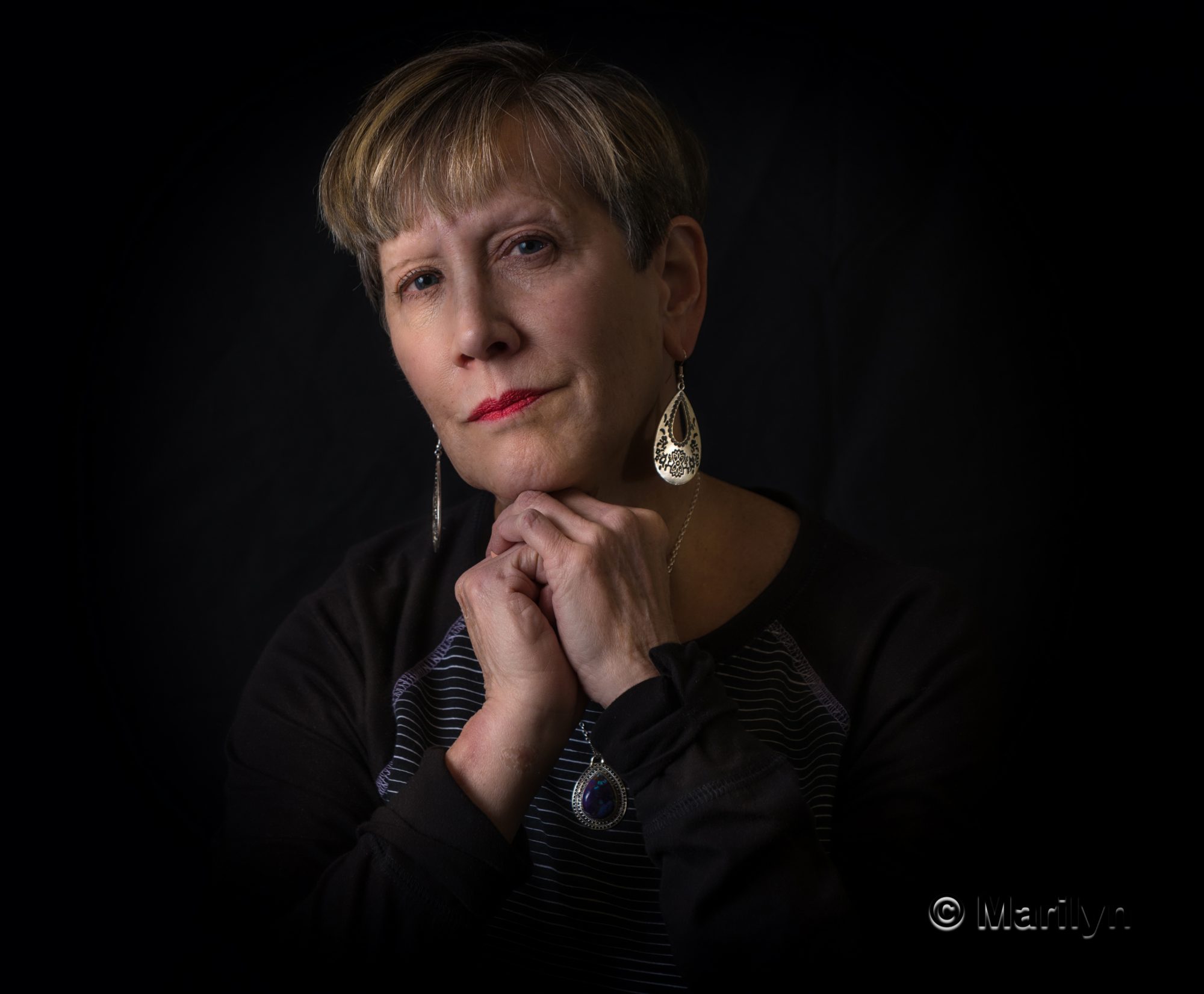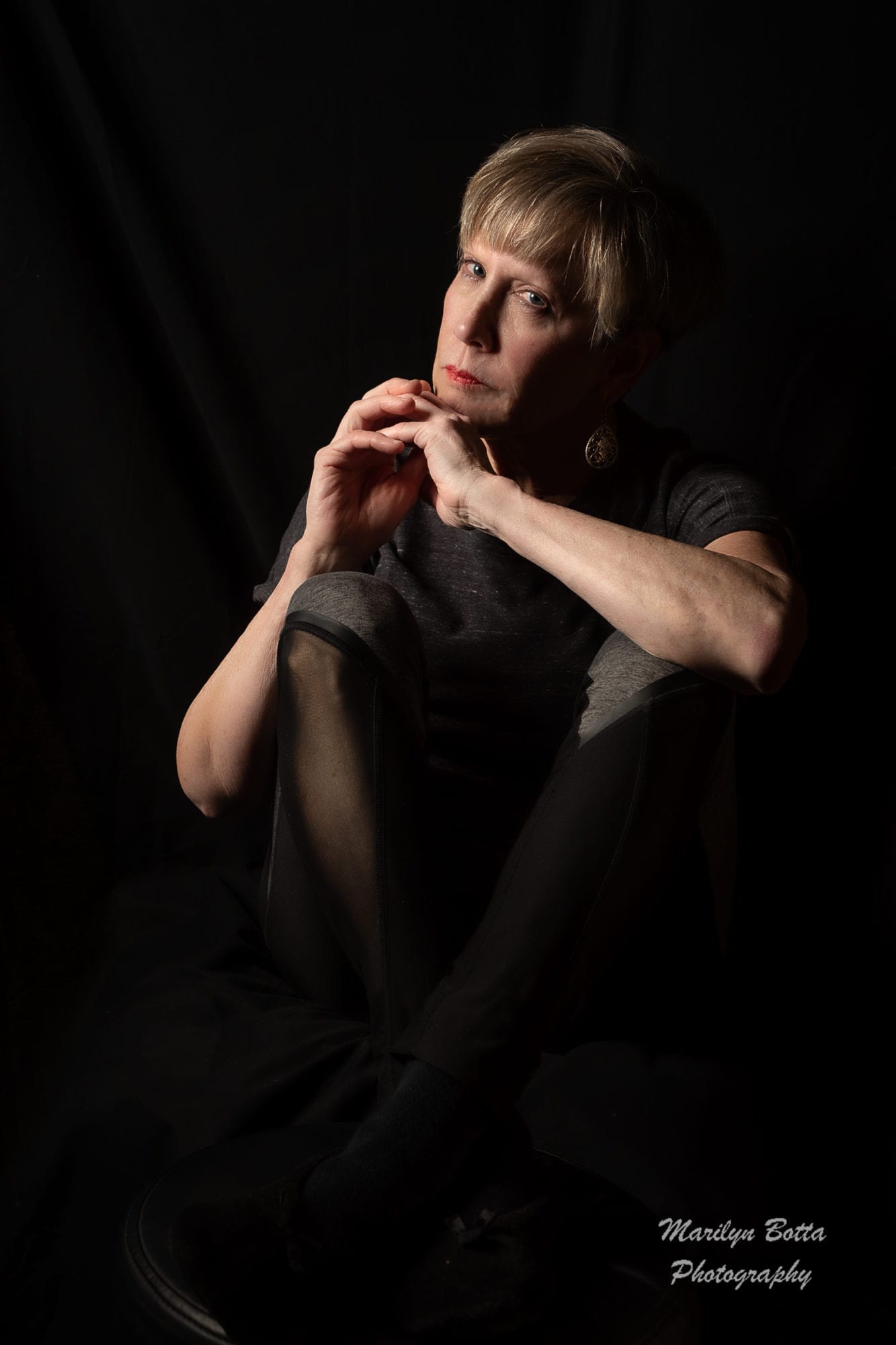 I took these portraits after taking an indoor lighting class. To take the self-portraits, I set up my tripod with my Nikon camera mounted on top, set the backgrounds, used a special release device, set the camera, focused and sat down. It was a process, but I believe the self-portraits came out very nice.