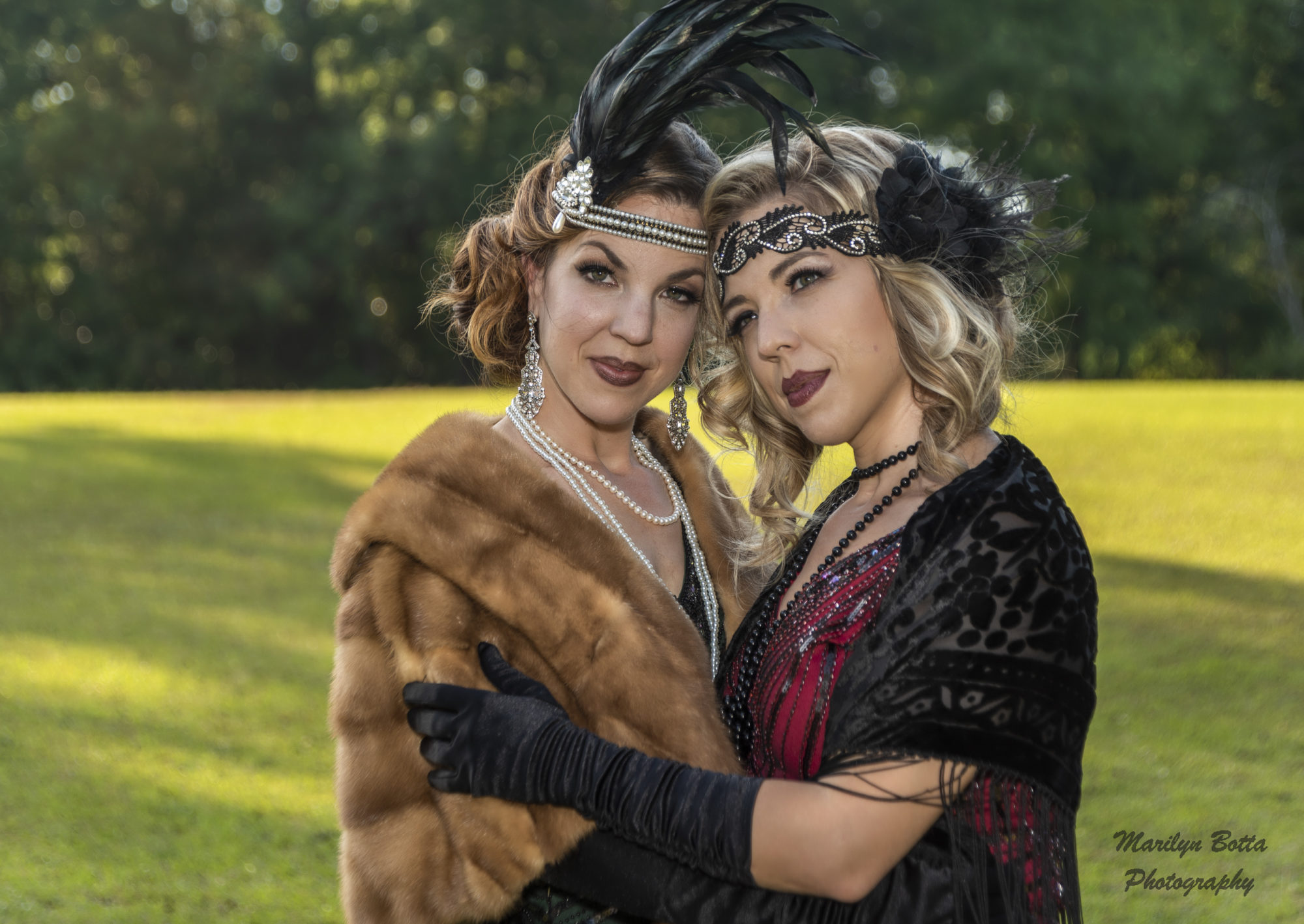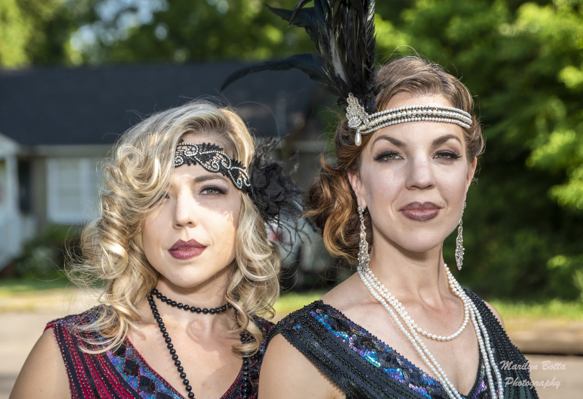 The Chicks that Click held a Roaring Twenties themed photo shoot using two twin models dressed as flappers. We also had a vintage car for them to pose with. The flappers were very photogenic and cooperative.
